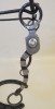 This is a vintage silver mounted Crockett solid shank bit with loose rein rings. It is marked Crockett on one of the bars on the mouth piece. The mark is very faint but you can make out the CR and the TT. This bit is style number 15 as shown in the Crockett Catalog No. 12 on page 34. The bit is steel and is mounted with engraved nickel silver. Both of the conchos on the cheeks are dented. It is not bent, broken, or repaired. There are marks from use. This would be a nice bit to use or to add to a collection.