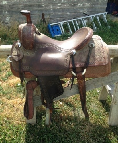 15.5 in Tad Sanders ranch cutter saddle. very nice saddles, with a good pocket in the seat. solid and sweats one even. 2000.00 obo