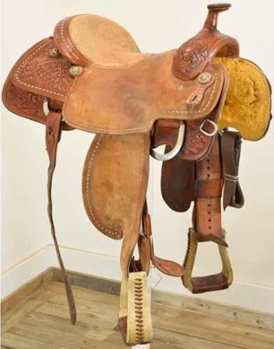 Saddles for Sale: Used 15.5" Running P Saddlery Team Roping Saddle Code: U155RPTR12FLDOTS SOLD #78167