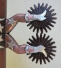 Measurements: Heel Band Width 1”, Shanks 2 ¾”, Rowels 2”, Heel Opening 3 ¼”, Weight of both spurs 1 lb 3.6 oz