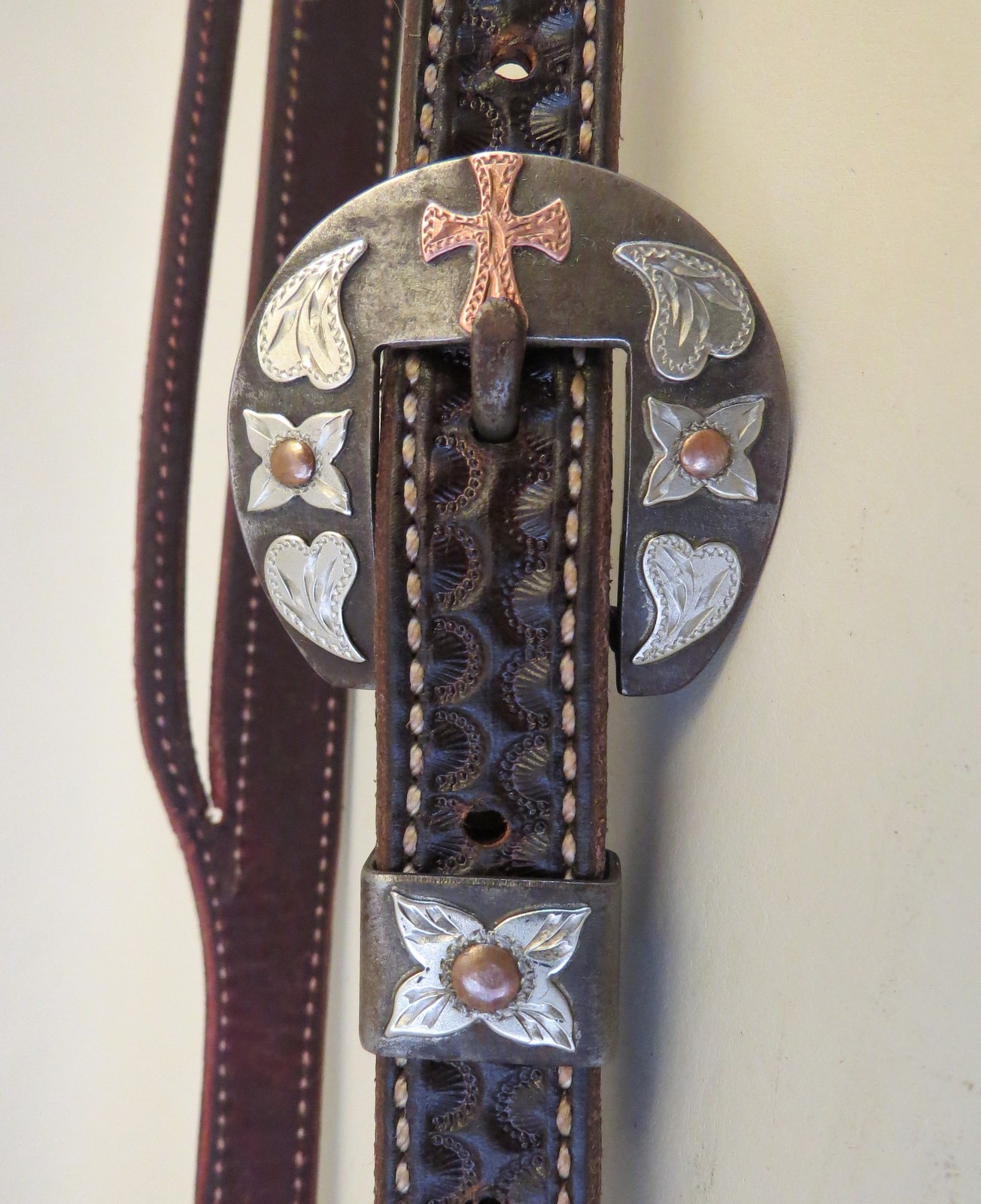 Handmade Bits & Spurs for Sale: 9736 New Handmade JEREMIAH MILLER Stamped Lined ¾” Split Ear Headstall JAYSON JONES Buckle SOLD #78277