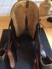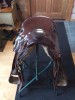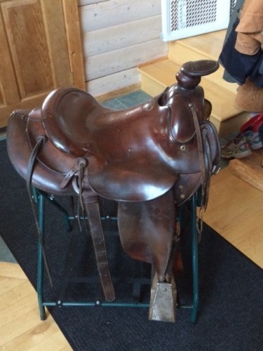 Own a piece of America’s saddle history. Excellent 1940’s ranch saddle handcrafted in Grangeville, Idaho by the Ray Holes Saddle Company. Saddle has been well maintained, kept indoors, and regularly polished to maintain its original beauty. Measurements are: 15 inch seat; 2 inch cantle; 7 and 3/4 inch gullet. The horn is wrapped and Blevins buckles are included on the saddle. Rigged for back cinch as well as a breast collar. The fleece is in great condition despite its age. Overall, a beautiful, authentic, and timeless saddle that is in excellent condition. Buyer pays shipping fees. Thank you for the interest.