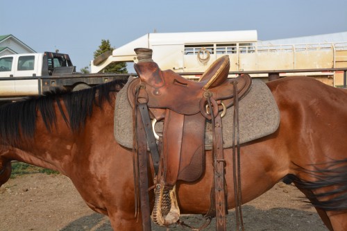 Drop ring riggin, sits good on horses. Broke in and ready to use. Call with any questions.