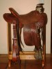 HERE WE HAVE A REALLY NICE MCCALL 98 WADE SADDLE. IT HAS A 16 ½” FINISHED SEAT. I AM 6’-0” 200 LBS. AND IT FITS ME REAL GOOD. EVEN THOUGH IT WAS BUILT IN 2003, IT IS JUST BARELY BROKEN IN---IT STILL SQUEAKS!