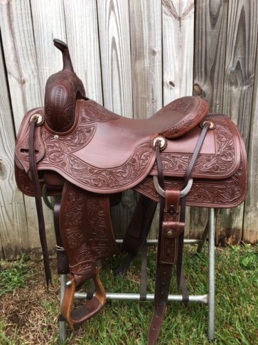 Jeff Smith Cutter. 15.5 in seat. Like new! Floral tooled Hermann oak leather. Buster Welch tree.