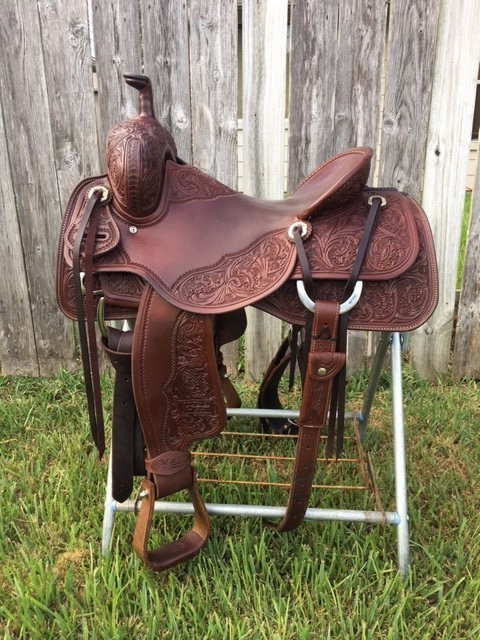 Jeff Smith Ranch Cutter. 16 in. LIKE NEW! Floral tooled Hermann Oak leather. Buster Welch tree. Pencil rolled cantle.