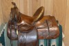 Vintage Al Fustnow saddle, 14 inch seat, 20 inch length swells, laces leathers, rawhide cantle, laced horn, brass hardware and bound stirrups. payment with pay pal or postal money order. Unique saddle.
