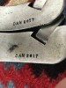 Spurs are marked DAN 2017 and made by Dan Wisely, a Texas maker. He makes quality rasp products. This pair he made by shaping two rasp and welding the two together in the shanks. These take well over 10 hours for him to make. The rowels fit as good as any. 1 1/4" bands, 2 1/2" shanks, 3 3/8" heel openings, 1 1/2" rowels. We pay shipping within the 48 states and accept most forms of payment.