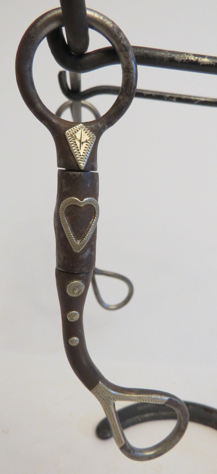 This is a used handmade bit made by Sam Jenkins. Sam is a well-known bit and spur maker from Texico, New Mexico. Sam is listed in Old Cowboy Saddles and Spurs by Gretchen & Mike Graham. It is marked Sam. The cheek pieces are steel and are mounted with nickel silver. It is not bent, broken, or repaired. This would be a nice bit to use or to add to a collection.