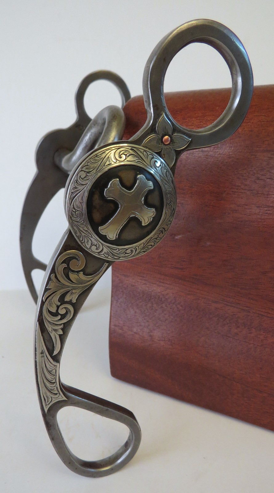 Handmade Bits & Spurs for Sale: 9839 Handmade BIGGS BIRD Mounted Solid Shank Curb Bit SOLD #80109