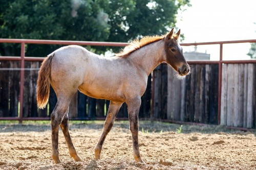 Absolutely beautiful 10 yo mare by Short of Santana (Prod of over $800,000 NCHA) with a GORGEOUS roan baby on her side by Little Pepto Rey. She is checked in foal to HIRED GUN and sells with a 2018 breeding to any of our stallions- you can choose which one!