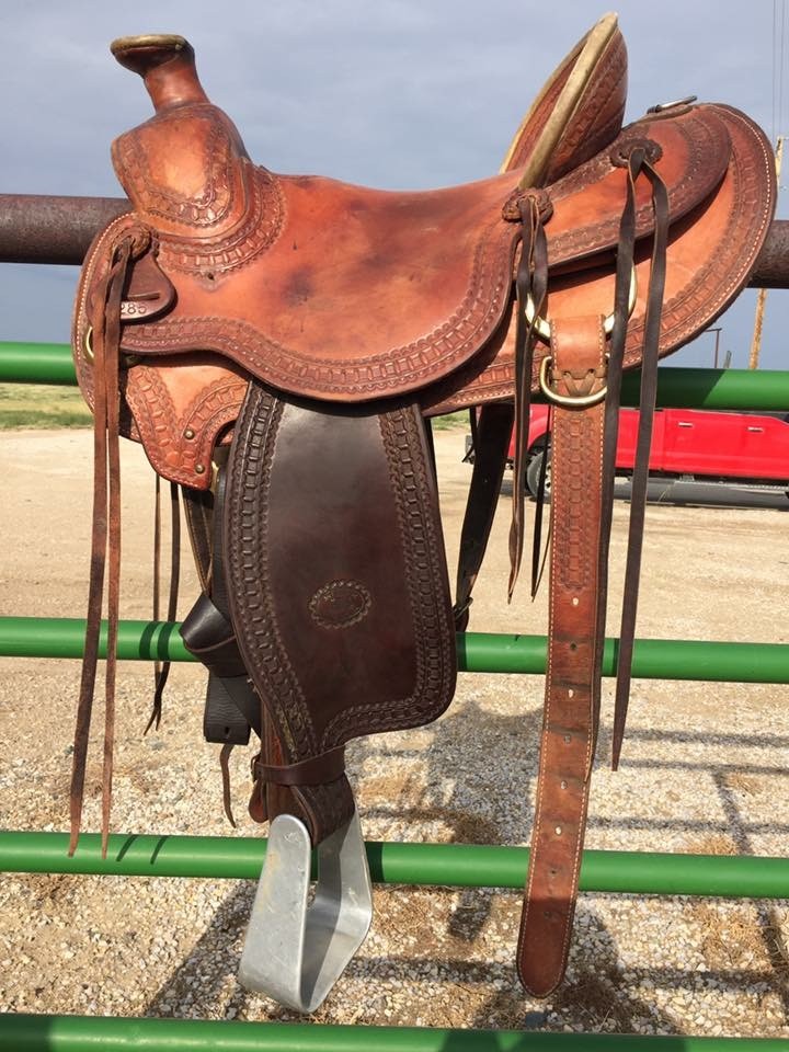 15 in Billy Cook Ranch Saddle for sale. Just recently heavy oiled is the reason for off color of fenders. Been used very little in the 3 years that we have had it and we bought brand new. Semi Quarter Horse bars. Only reason for sale is my cousin got a new one. $1,300 obo