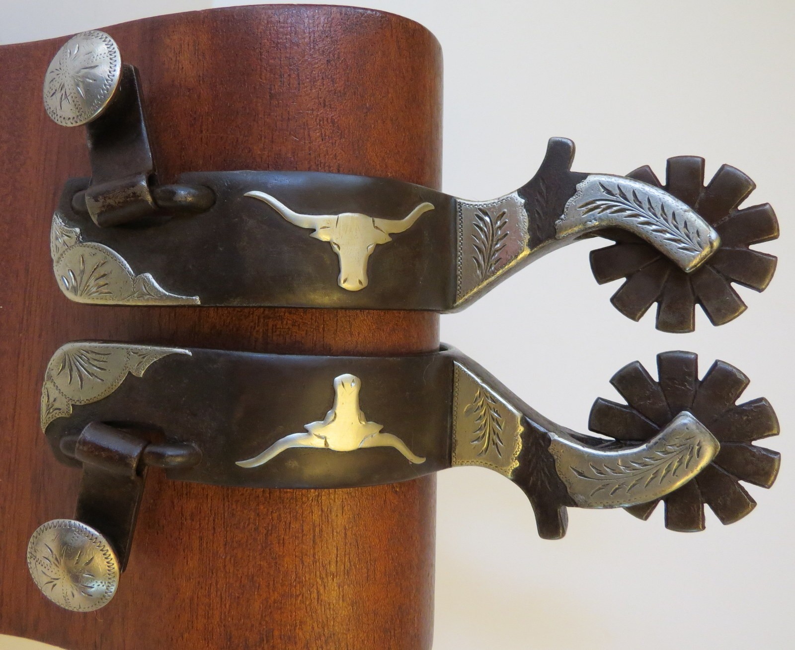 Measurements: Heel Band Width 1 1/16”, Shanks 2 ⅛”, Rowel Diameter 1 ½”, Rowel Points 10, Heel Opening 3 ¼”, Weight of Both Spurs 1lb 6.4oz