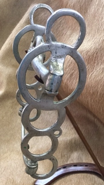 Visalia Polo Cheek Bit in good condition, no bends, breaks, or repairs, 7" cheek, 2 1/4" purchase, 4 3/4" wide mouth with low port roller. $150
