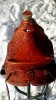 Custom wade saddle made by Steve McKay of Burns, OR built on a Sonny Felkins rawhide covered wood tree. Specs on the tree are 6 1/4" gullet on 90 degree bars. Fits a lot of horses very well, sweats evenly. Has crupper D rings so ride it on your mule too. 16" seat. Full floral carved in a wild daisy pattern. Background is dyed black so it really makes the carving pop. Brass hardware, rigging slightly ahead of 3/4. Ground seat is well shaped, no pressure points. Mule hide horn wrap. Real shearling. Comes with your choice of 5" stainless steel or brass stirrups. In excellent condition, about as new as used can get, but you save thousands off the new price. Buyer pays shipping.