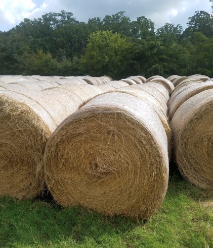 1000 rolls of Hay baled this year. The Heavy Fertilized Round Bales wrapped with net 4’ x 5 1/2’ size bales. $35.00 - $50.00 each.