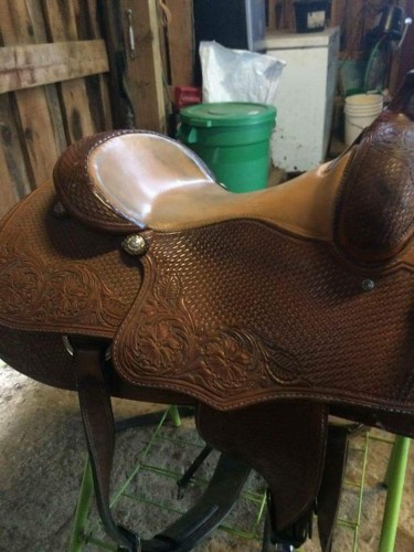 This saddle is beautiful and in great condition. 15.5 in seat and full qt horse bars.
