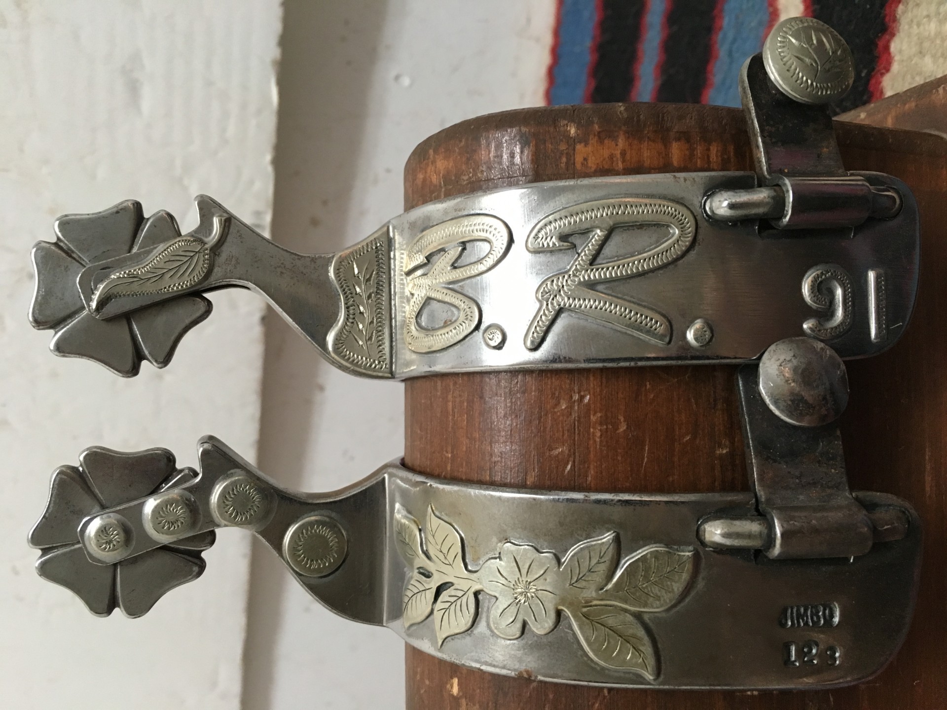 Handmade Bits & Spurs for Sale: JIMBO HUMPHREYS MOUNNTED SPURS SOLD #82099