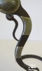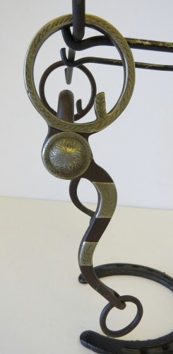 This is a used handmade bit made by the late Jerry Cates. It is marked Cates and 824. Mr. Cates was posthumously honored by the National Cowboy and Western Heritage Museum with the Chester A. Reynolds Award for his contribution to the preservation of the legacy of the American West. He is listed in both spur books by Ned and Jody Martin. We have not seen this style of bit by Jerry before. It is steel with a natural patina and is mounted with nickel silver. There is one piece of silver missing and a ding in one of the conchos. Both are noted in close up pictures. There is some minor rust build up on the steel. It is not bent, broken, or repaired. This would be a nice bit to use or to add to a collection.
