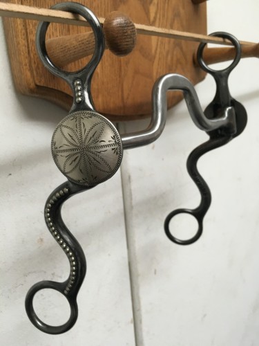 Quality using bit by award winning maker Gary Wiggins of Brewster, Kansas. This unused bit features 7" cheeks and 5 1/8" mouth, with 1 1/2" hand egraved conchos. Well made bit, made to use. Qw pay shipping within the 48 states and accept most forms of payment.