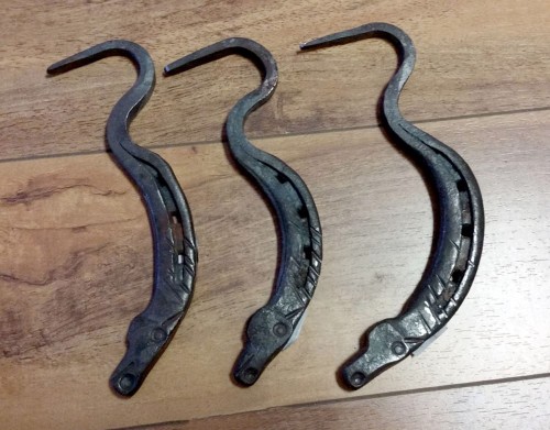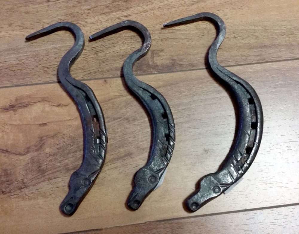 Keep those horse hooves healthy! Quality hand forged hoof picks by former farrier and current blacksmith, NJ Pawley of Cody Iron Works. These extremely durable horse head hoof picks are forged from half of a horseshoe and each pick is styled with a horses head. The ultimate farrier tool and maintenance tool for horse owners to remove stones, mud, hard-pack clay and debris from hooves.