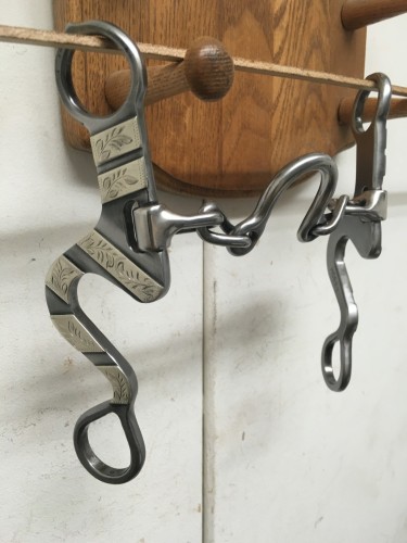 Mick Hobbs made bit that is marked C28S HOBBS 703017, unused, 3" purchase, 6 3/4" cheeks, 5" mouth. Hand cut and hand engraved mountings. We pay Shipping within the 48 states and accept most forms of payment.