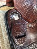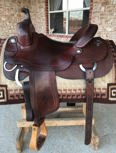 This saddle is gorgeous! Very supple leather with pretty conchos. This saddle won’t disappoint!