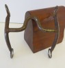 This is a used Daryl Davis solid shank curb bit. It is marked DD on the back of the port. Daryl Davis is a well-known bit and spur maker from Brock, Texas. The bit is steel with a natural patina and the cheek pieces are mounted in sterling silver bead wire. It is not bent, broken, or repaired. This would be a nice bit to use.