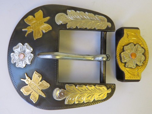 Handmade Bits & Spurs for Sale: 10125 New Handmade DON ROGERS Two Piece 1 ½” Belt Buckle Set Butterflies SOLD #85684