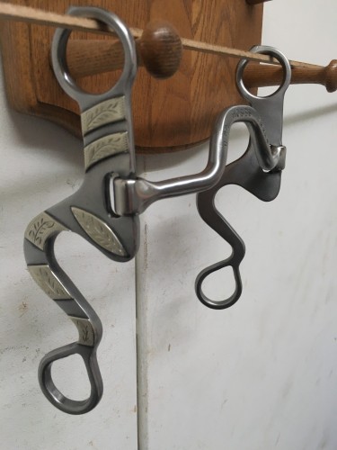 Quality using bit made by Mick Hobbs and marked HOBBS C22 12218. 6 3/4" cheeks, with 5 1/4" mouth with copper inlays. His bits are used by a lot of horsemen. We pay shipping within the 48 states and accept most forms of payment.