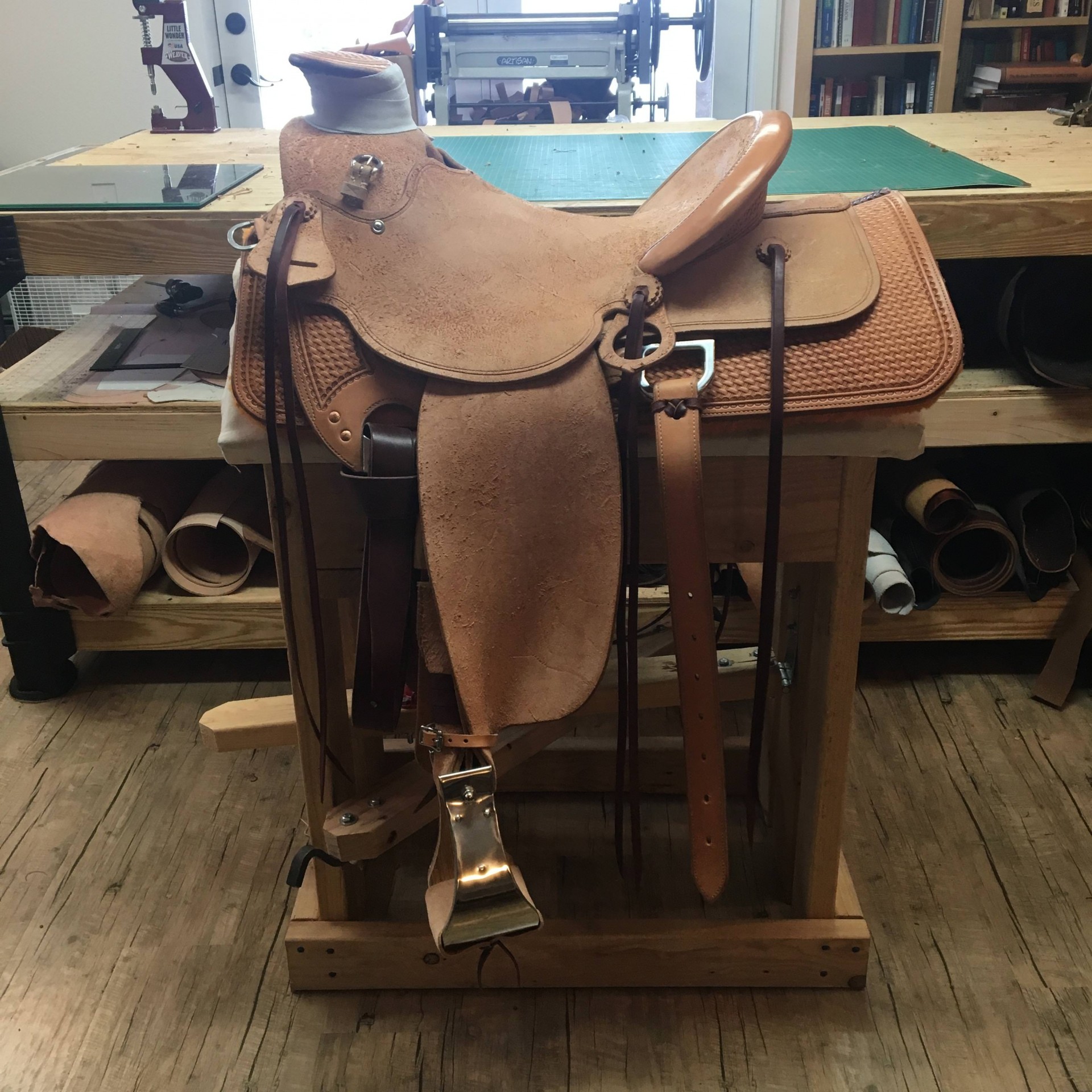 Books are currently open for full custom saddles. Base price is $3,450 for a full roughout with a Sonny Felkin tree, $3,950 for a Warren Wright.I have 15-1/2" and 16" stock trees on hand.