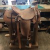 Hermann Oak top grade heavy skirting, Horween full length latigos and strings, Horween laced skirts. Flat plate rigged at 7/8 with Jeremiah Watt stainless steel rigging plates and stainless steel clad 4" monel stirrups. Sewn with heavy waxed linen thread throughout. Includes back cinch.
