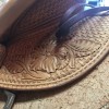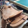 Hermann Oak top grade heavy skirting, Horween latigos (one half-breed) and strings, Horween laced skirts. Flat plate rigged at 7/8 with Jeremiah Watt stainless steel rigging plates and stainless steel clad 4" monel stirrups. Sewn with heavy waxed linen thread throughout. Includes back cinch.