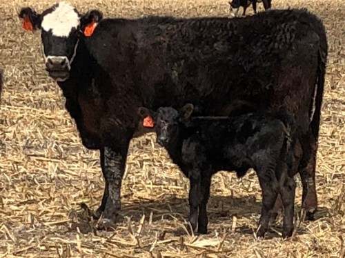 87 Black Angus and F1 Angus - Hereford crossbred cows with calves at side. Calves were sired by Black Angus bulls and born March 15 to May 15, 2018. Cows will consist of 56 head of 3 and 4 year old cows and the balance of 31 head will be 5 and 6 years old. They are a nice gentle set of medium to large frame cows, and will weigh around 1200 lbs. Pairs will deliver May 15 -30.