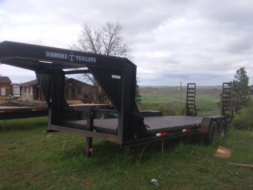 2003 Black Diamond T Trailer. Gooseneck, flatbed, steel deck, loading ramps, all electric works, pulls good. Located in Sheridan, Wyoming. Asking $4,200 or best offer. For more info call 307-752-1033.