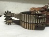 Mike Emberson made spurs marked EMBERSON 08 51, with 72 pieces of silver and brass. Come with good straps. 1 1/8" bands, 3 5/16" heel openings, 1 1/2" rowels, 2 3/8" shanks. There is some play in the rowels, but far from worn out, otherwise in good used condition with normal wear scratches. We pay shipping within the 48 states. We accept most credit cards, Pay Pal, money order, or check.