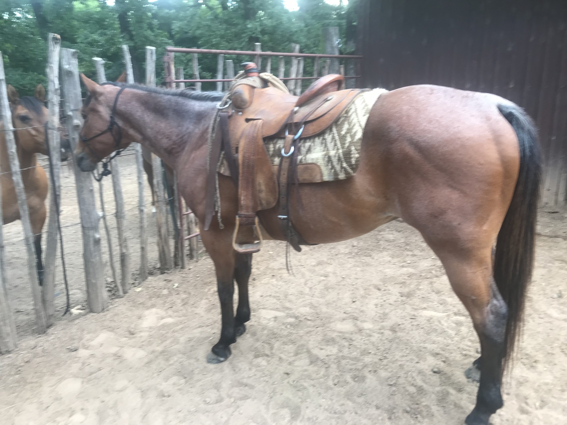 Fletch is a 13 yr old bay ranch gelding that is 15.1 hands , 1150 lbs , black footed and plumb gentle for anyone that can crawl on his back. He has been ranched on his whole life in Mississippi and Louisiana in the bottoms and swamps with a pack of dogs catching crossbred cattle . He doesn’t get rattled when you latch onto a big bovine and knows his job. Fletch rides low headed and quiet with a good ground covering dog trot. You are not going to show him he hasn’t been doing for years, dragging calves , sorting in the pens, or catching a wild one outside. He has lots of cowboy manners and I feel anyone can make a hand on Fletch.