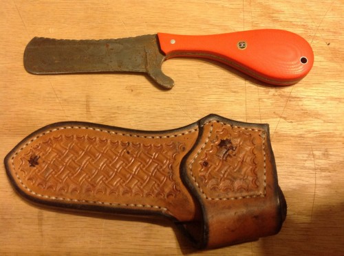 I’ve used this knife a bunch and I have sharpened it a bunch. Damascus steel blade. Comes with sheath. Knife is in great shape, just needs to be cleaned. No emails please. Call or text with any questions
