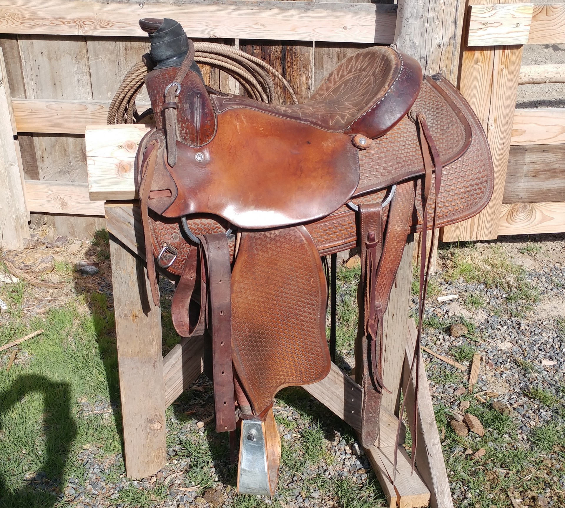 Saddles for Sale: 16" Basket Stamp SIMCO Roping Saddle SOLD #91406