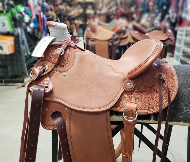 This McCall McLite is a wade style with wild rose tooling, a back cinch, and roughout. This saddle is very light and is perfect for trail riding or roping this summer!