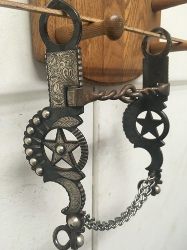Lightly used SONNY SILVA ANDREWS, TEXAS marked bit. His bits are very popular with many ropers as well as the working cowboys. This has the look and the usability with 5" twisted wire mouth and 7 3/4" cheeks. We pay shipping within the 48 states. We accept most credit cards, Pay Pal, money order, or check.