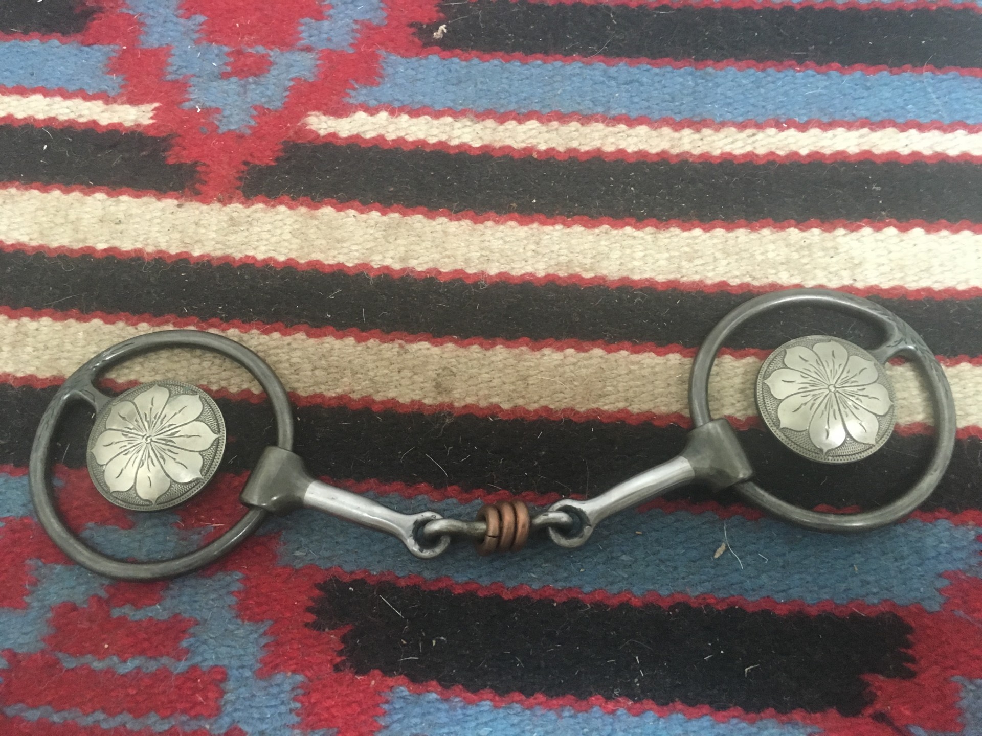 Quality bit made by award winning maker Gary Wiggins and marked WIGGINS LR14.DB.17. 5" mouth, 3 1/4" od rings, 1 3/4" hand engraved conchos. He even engraved in the rings. Lot of eye appeal. We pay shipping within the 48 states. We accept most forms of credit card, Pay Pal, money order, or check.