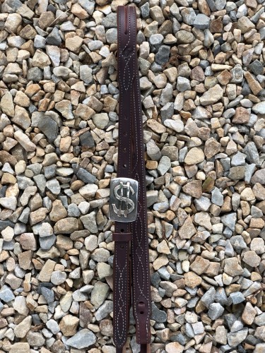 1” split ear headstall, latigo doubles and stitched. Leather is marked Blevins and the buckle is made/marked Savage (Jesse Lawson). Take $175 on it.
