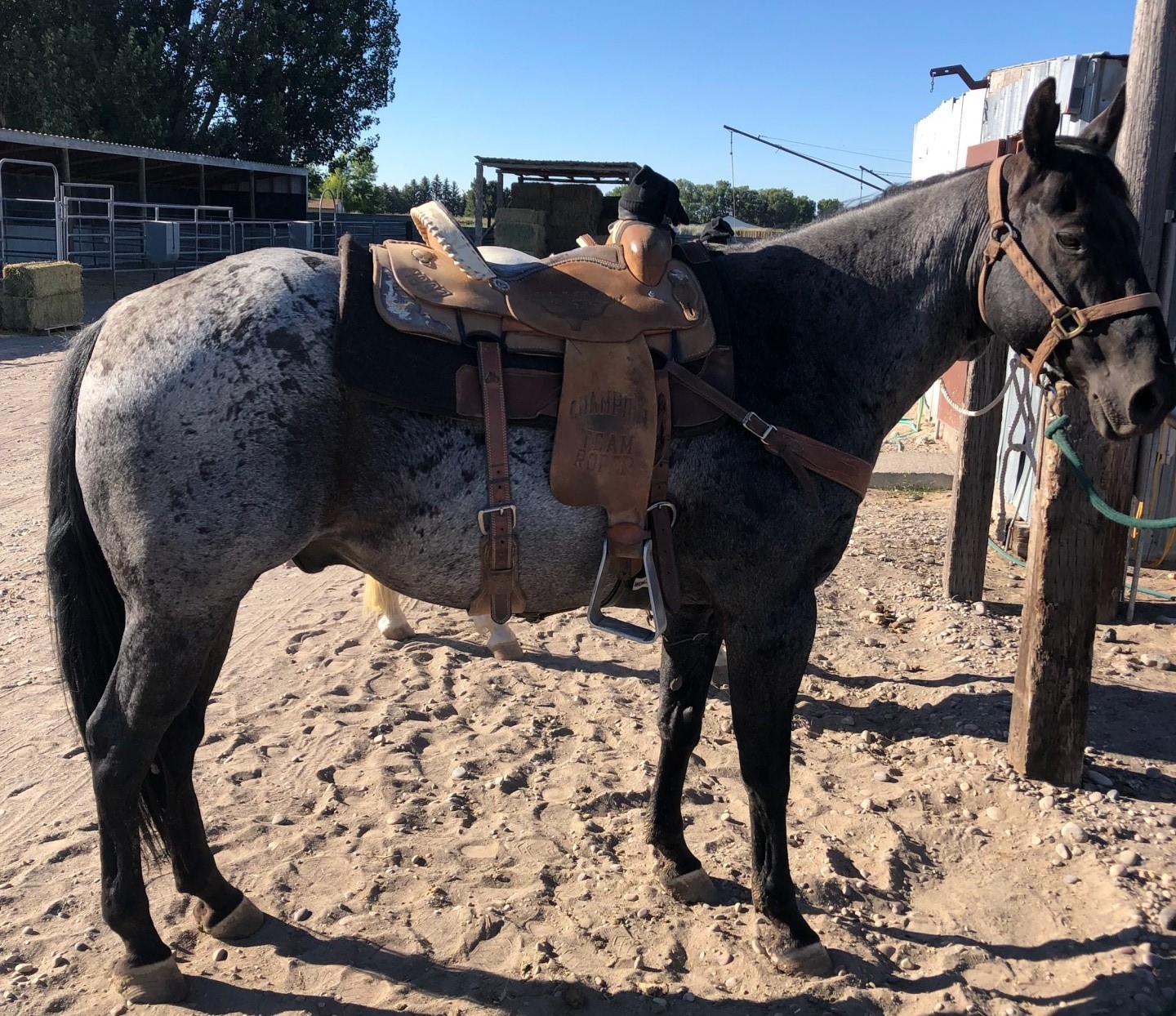 Good head or heel horse for sale will fit a 3-5 roper not for a beginner the only reason I say that is because he is a little spooky with his feet he has been since we have owned him other than that you can take him out in the mountains he is fine being alone good hard feet videos available upon request we do have have steers for you to come try him on. Please call or text for more info