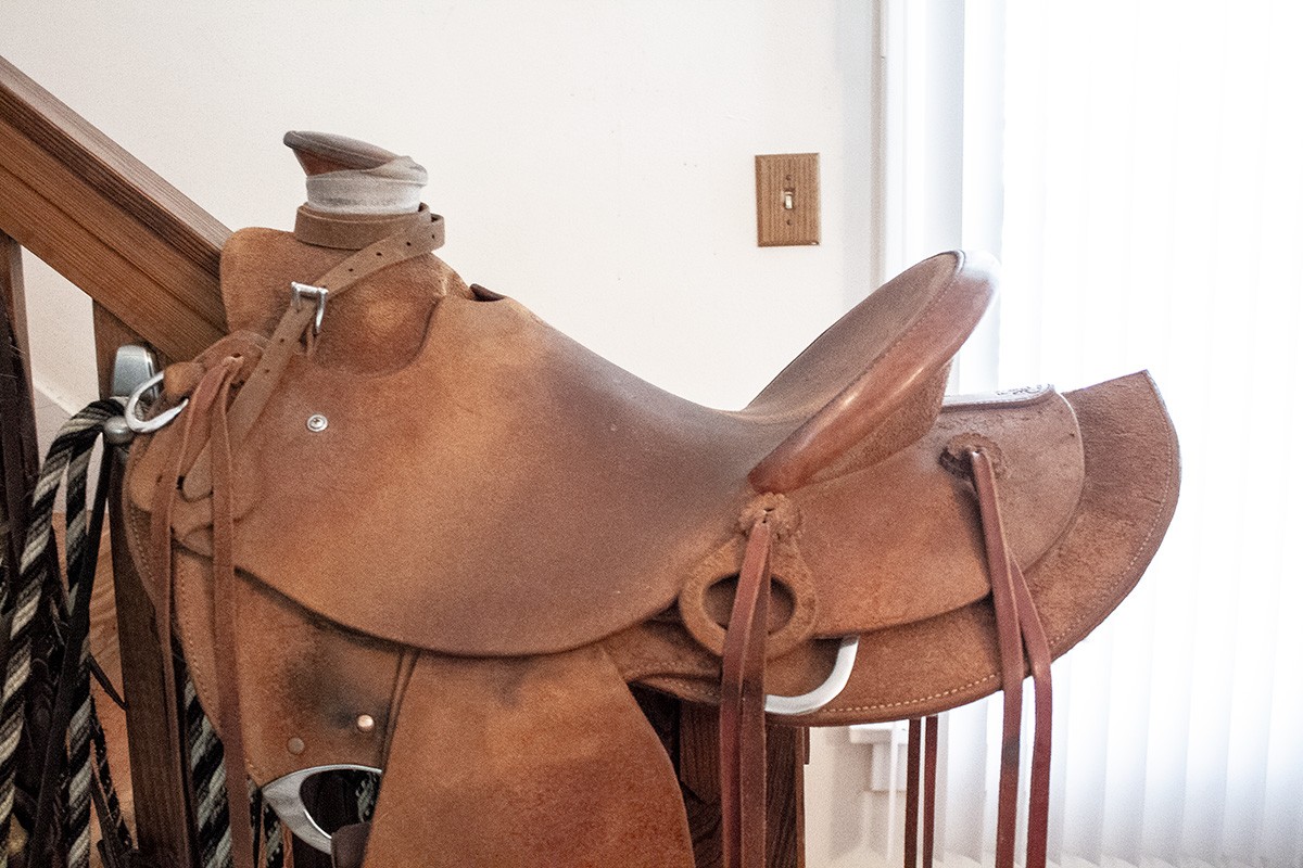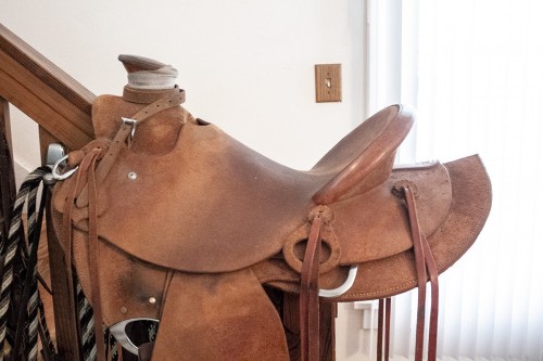 The saddle is in really great shape. It’s never been in any wrecks or been roped out of. We’re selling because we’ve gravitated to smaller stature horses.