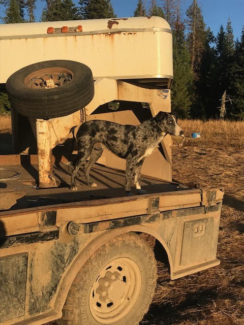 Peck a 2 year old, intact male, 1/4 Catahoula 3/4 Border Collie Cross. Pecks a great working dog being used and raised in the Hells Canyon country. He has a lot try and can go all day. He is a dog that tries to understand the job at hand, weather your asking him to bring them to you, hold them, drive them, or just stay out of the way until called upon. He will work both ends, but a little stronger on the heals. I have had one litter of pups out of him(they are the other spotted dogs that you see in the video) that are 6 months old now and going great. I use Peck almost exclusively a horseback, but for the sake of not losing a phone in the woods most of the videos are out of the pickup and sometimes on tired cattle. One of the best things about Peck is his ability to find cattle in the timber, or the ability to send him far out to fetch cattle that only you can see. $2000 open to offers.