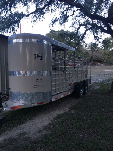 Used 2016 5 x 16 half top bumper pull, rubber floor, center gate with slider, solid rear gate, with slider, 14 ply tires and spare, clean outs, gravel guard, inside lights, skid plate. Call (575) 502-0013 for information.