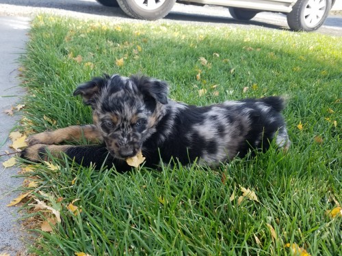 We have 4 Australian Shepherd puppies who need good homes. These puppies are from Wally Butler lines and are very instinctive herders with a very calm temperament. They will make great working dogs or fantastic companions. They have been well socialized with many children and adults. We have a blue merle male and 3 females (2 black tris, 1 black bi.) These puppies are ASCA registrable and have received age appropriate shots and dewormer. They were born August 16th and are ready for their new homes now! Price will be higher if you want breeding rights. Text or call with questions and to see more pics of specific puppies.