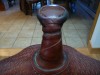 LEFT. 16 INCH SEAT, FLAT PLATE RIGGING. SITS A HORSE VERY WELL. WOOL STILL IN GOOD CONDITION. HORN HAS A ROPE BURN AND THERE IS A SMALL DENT IN THE CANDLE. PLEASE CONTACT BY PHONE OR TEXT. WILL NOT RESPOND TO EMAILS WITH THE SIX OR SEVEN STANDARD SPAMMER QUESTIONS.