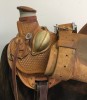This saddle was built by Bill Adams of Tumbleweed Saddlery in Morgan Hill CA. 6 1/4"x 8" gullet, 90 degree bars, 5" tall, 12" wide cantle, with 1 1/2" dish, 3" mulehide wrapped horn with 4 1/2" cap, 27" skirt, 4" Monel stirrups, real fleece, cross over rope strap, original bucking rolls and back cinch, matching breast collar. It has been ridden very little and was stored in the house.$2,200